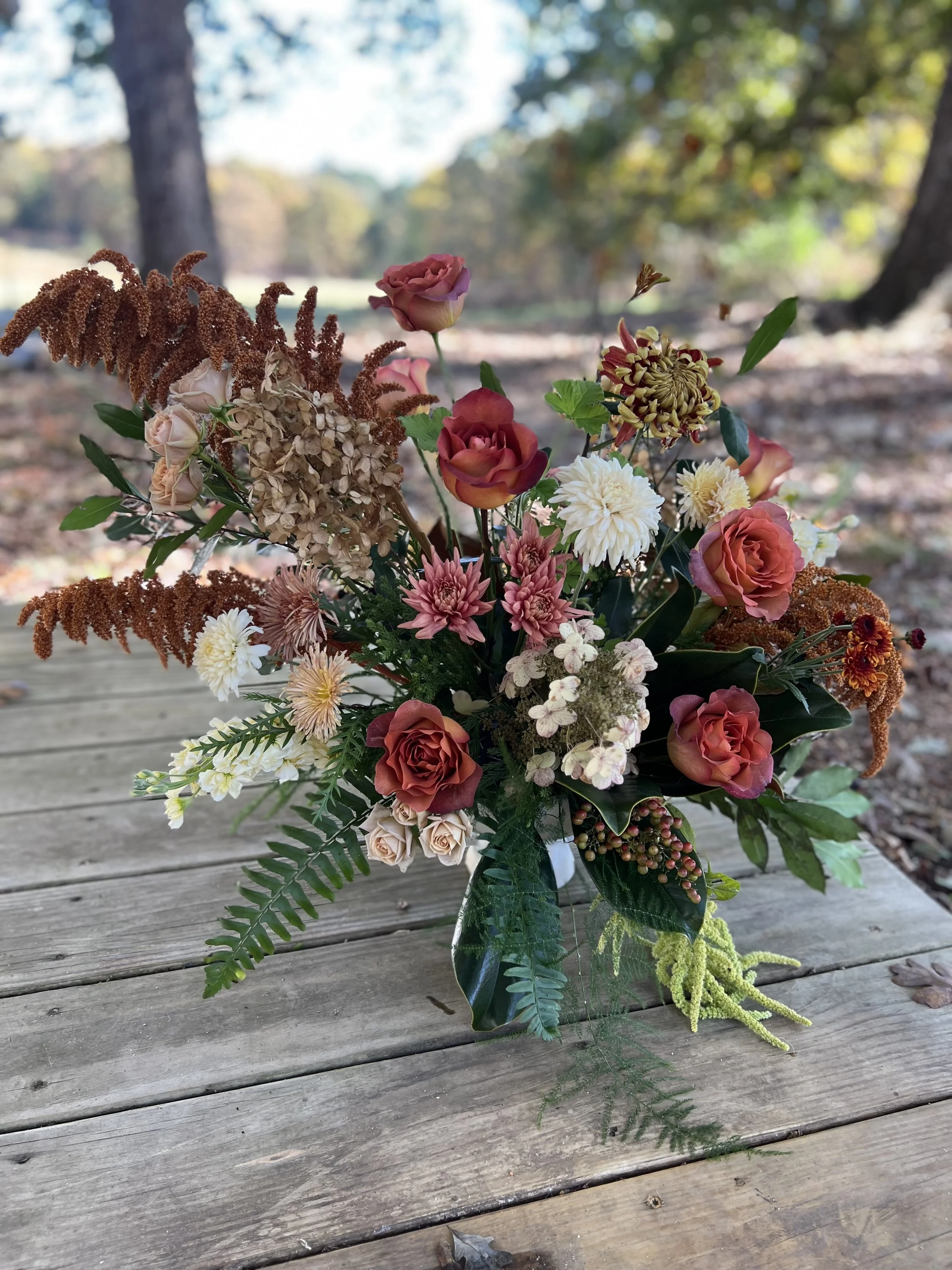 Hen House Flowers designs from our studio at Buck Naked Farm. If you’re local, explore our hands-on workshops or weekend flowerstand.